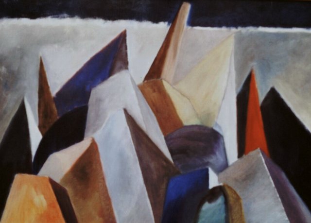 Nell’armonia di un CAOS dove i frammenti vaganti tentano una ricomposizione logica, l’uomo è presente in attesa che tutto torni entro i codici di una forma dove si deve tornare a vivere. La tematica delle ultime opere di Giorgio Occoffer verte su questa lotta esistenziale e il pittore, lasciandomi libero di interpretare i suoi quadri, non so se condividerà la mia presunzione.