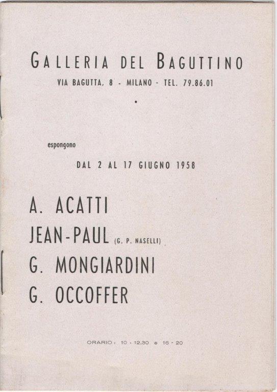 presenza-1958 di Giorgio Occoffer|Pubblicato 14 Novembre 2019-con dimensione 543 × 768 in Collettiva 1958 – Galleria del Baguttino – Milano Navigazione immagini Precedente